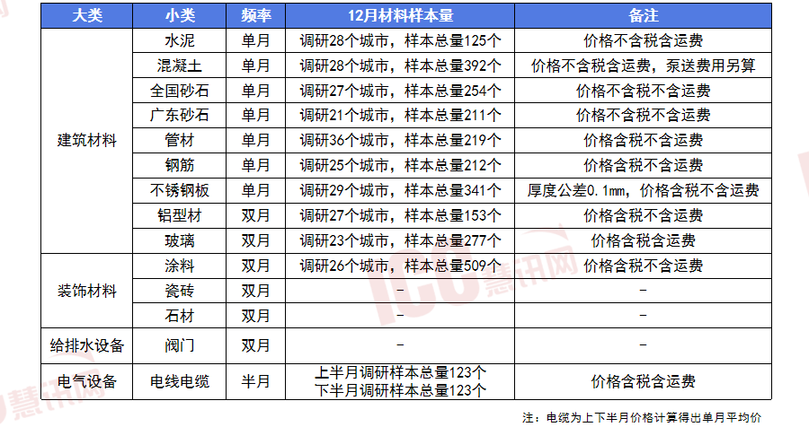 12月份,岁暮趋弱收尾。12月份建材行业市场需求全体回升。